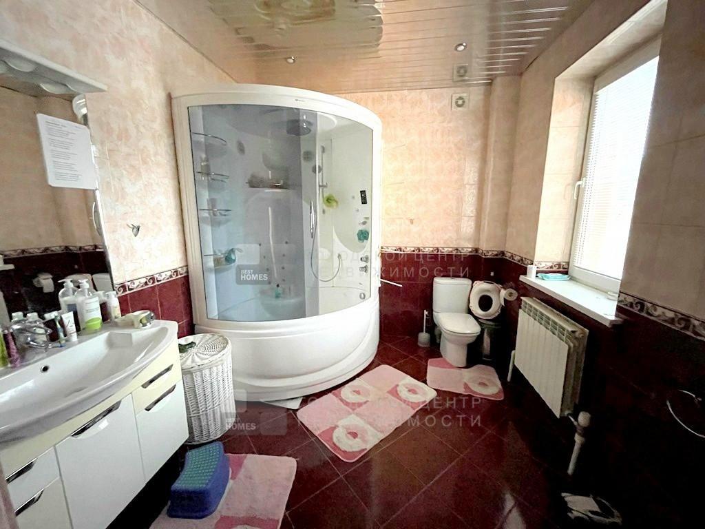 Дом 300 м2, из газобетонных блоков, облицован кирпичом, фундамент свайно-ростверковый+монолитная плита, кровля - металлочерепица, стеклопакеты.