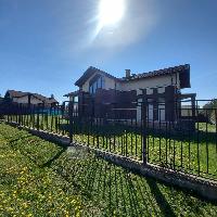 Новый современный жилой дом 260 кв.м. в стиле Шале, в лучшем поселке на Новой Риге КП Опушкино, рядом с деревней Буньково. Дом на монолитной железобетонной плите и теплым полом, стены- керамический кирпич, облицован фасадным кирпичом, перекрытия- железобетонные, кровля-металлочерепица, окна- деревянные/стеклопакеты, лестницы- фигурные бетонные. 1 этаж: Гостиная со вторым светом и выходом на площадку для барбекю и балконом, кухня, столовая с выходом в сад, холл, ванная комната, санузел, сауна, котельная 2 этаж: главная спальня с санузлом, гардеробной и балконом, 2 спальни для детей, ванная комната, кабинет. Коммуникации все центральные разведены по дому: газ, вода, канализация, электричество. На участке 17 соток: естественный газон, открытый паркинг на 4 автомобиля, территория огорожена в едином стилистическом решении поселка. В поселке спортивные и детские игровые площадки, выходы в лес. Уникальный поселок с образцовым обслуживанием и содержанием.