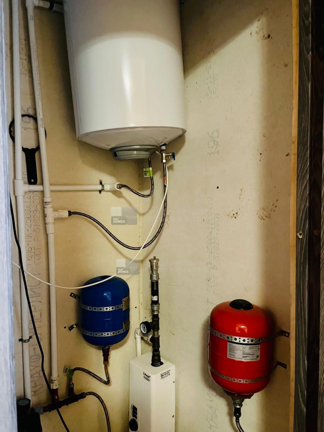 Отопление жидкостное от электрического котла (6 кВт). Разведено по всем помещениям.