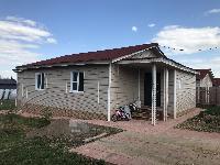 Блочный высокий фундамент, материал стен брус 150Х100. Утеплен. Обшит светлым сайдингом.