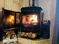 В гостиной уютный металлический камин (дрова, брикеты) создающий дополнительное тепло и уют длинными зимними вечерами.