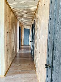 Крыльцо, холл, коридор, кухня-гостиная с камином, три отдельных комнаты (спальня, детская, кабинет), с/у с ванной, бойлерная.