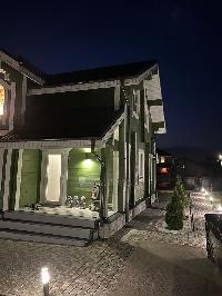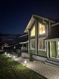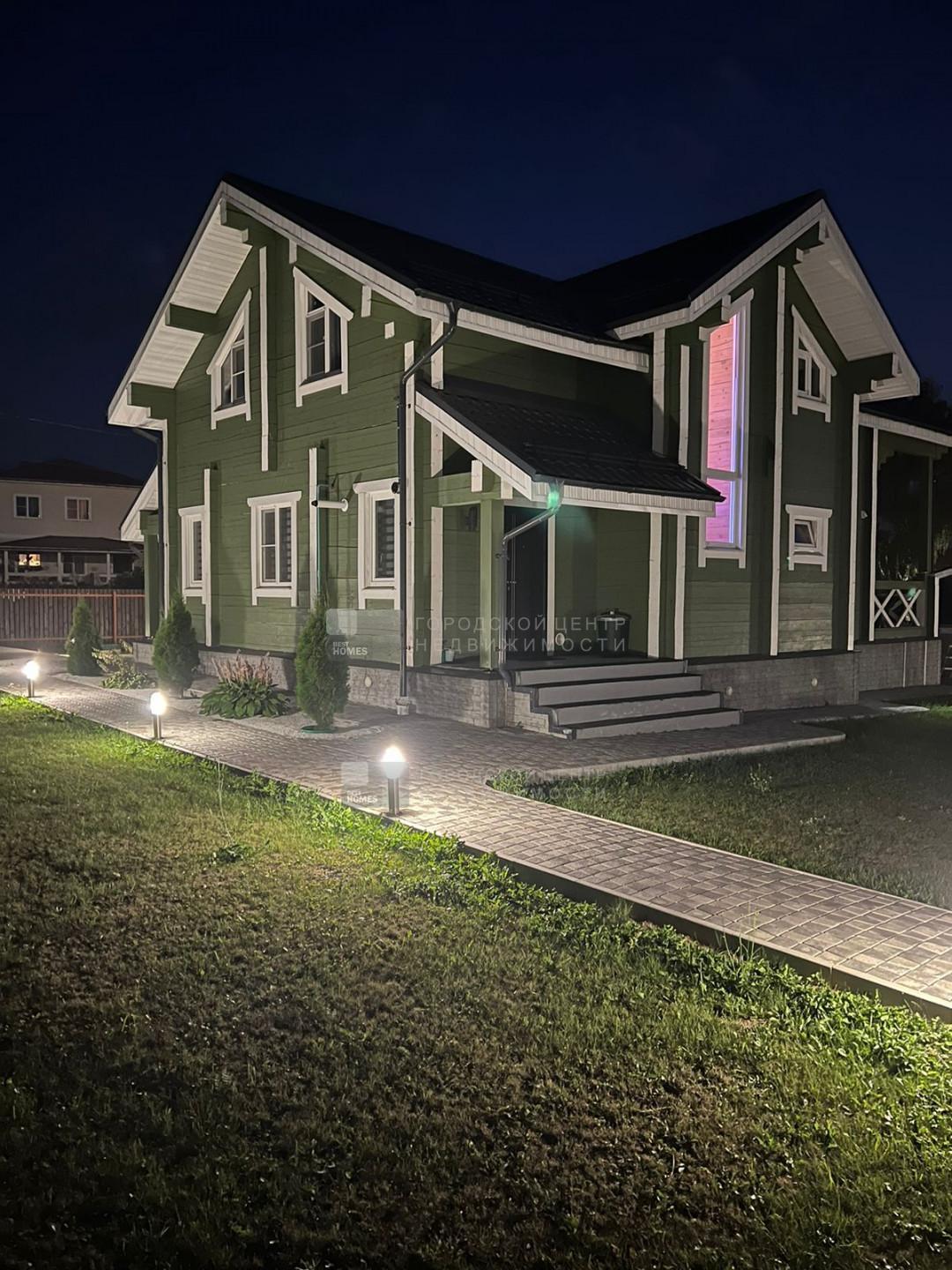 Внутри дома и снаружи по фасаду, а также по периметру дома сделана подсветка, создающая уютную атмосферу и зимой и летом.