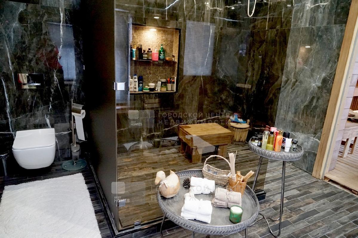 Особое внимание отведено качеству строительных и отделочных материалов, мебели, надежности инженерного оборудования. В отделке - натуральный дуб, текстильные обои, венецианская штукатурка, итальянская плитка, мрамор. Фирменная мебель известных итальянских брендов придает интерьеру тонкость и изящество, и в совокупности с идеальным состоянием дома излучает энергию настоящего качества.