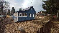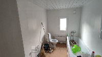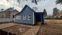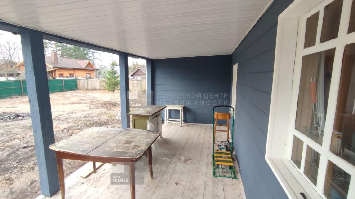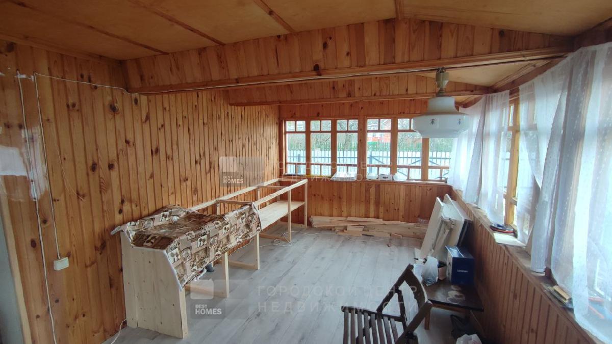 В доме есть одна большая комната, спальня, кухня и санузел. Также пристроена веранда.