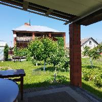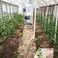 Хозяева дома — настоящие садоводы. В их коллекции плодовых деревьев (около тридцати) кроме традиционных яблонь, вишни, груш и слив есть абрикосы, черешня, алыча. Много ягодных кустов: смородина, малина, клубника и т.д. Две остекленные теплицы предназначены для выращивания овощей.