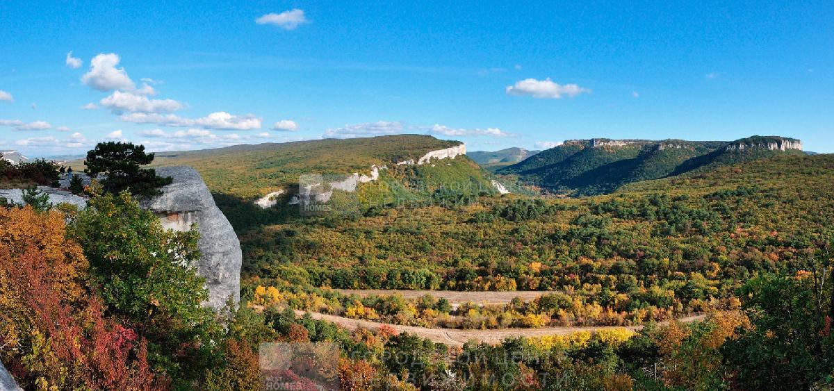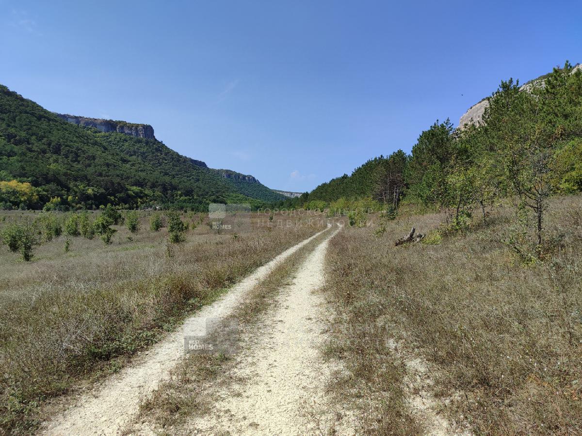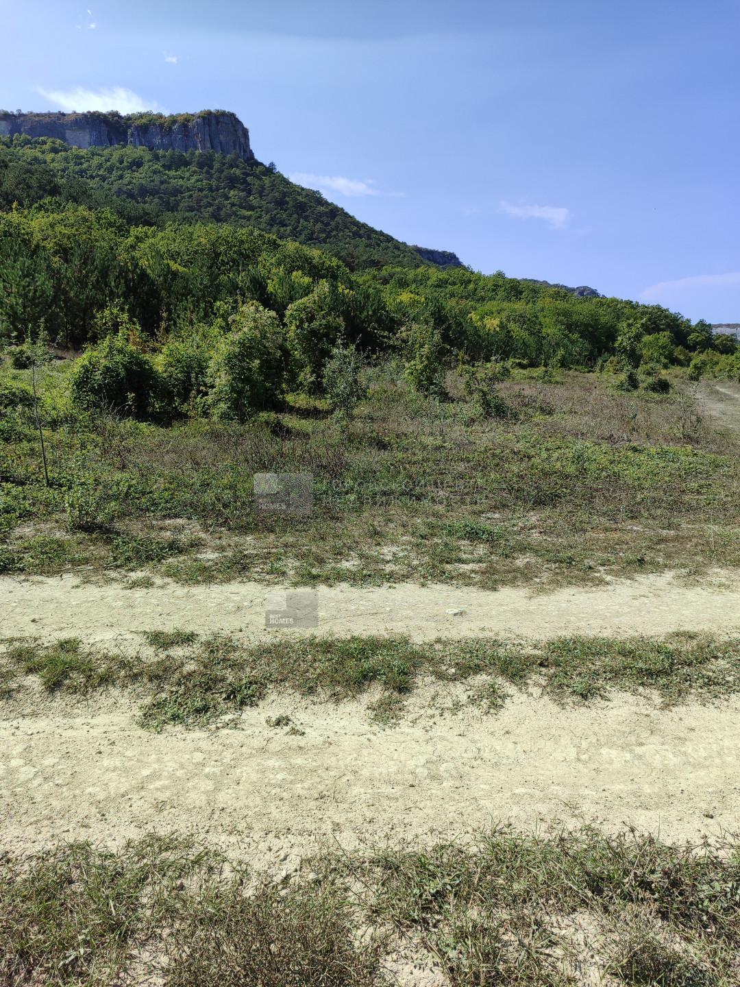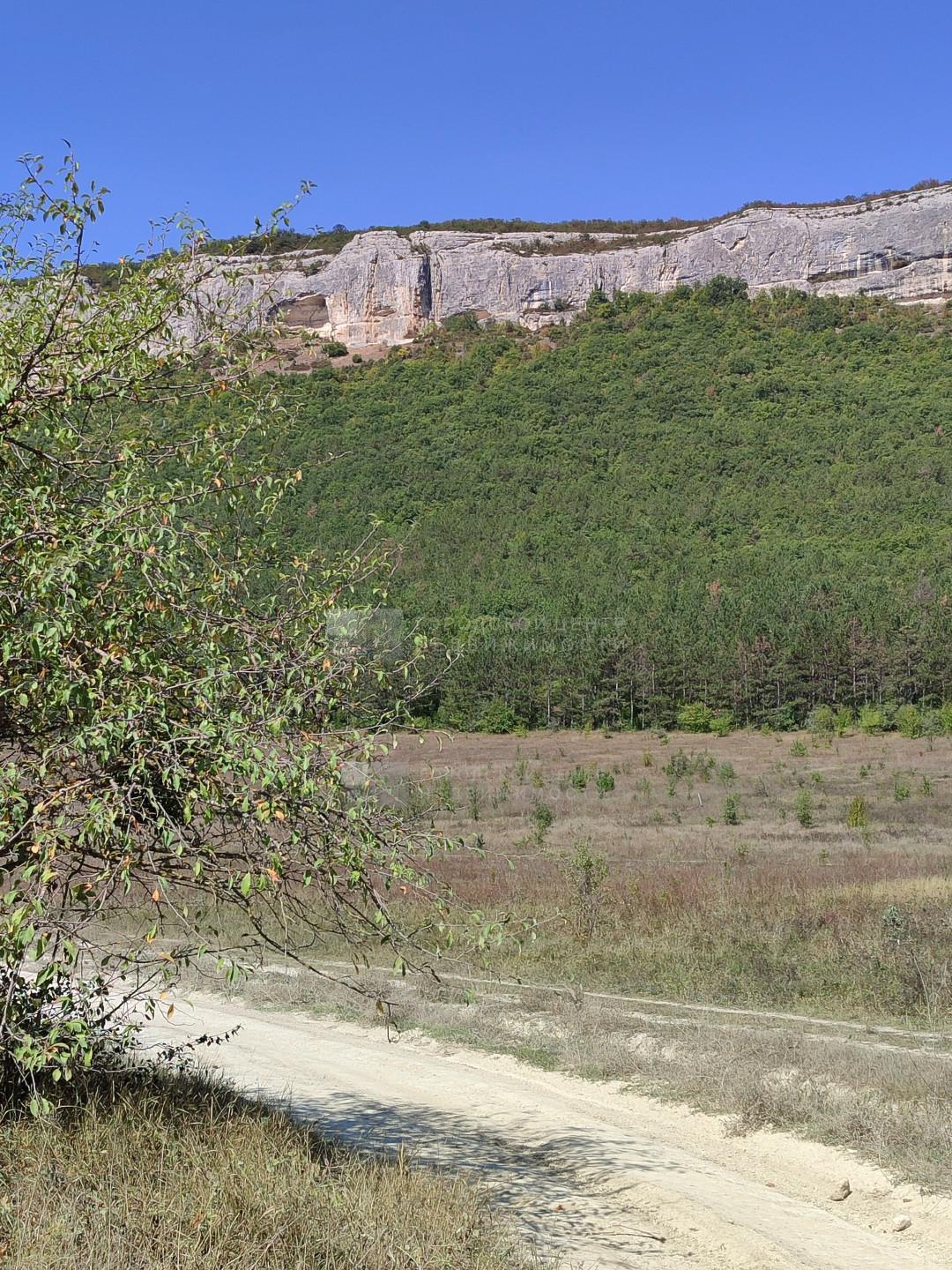 2 участка смежных в Бахчисарайском районе, под горой Мангуп-Кале. Красивое видовое туристическое место, дорога на пещерный город Мангуп. Ровное поле чуть под уклоном к горе, по границе сосновый бор с одной стороны и орешниковые и кизиловые рощи с другой.