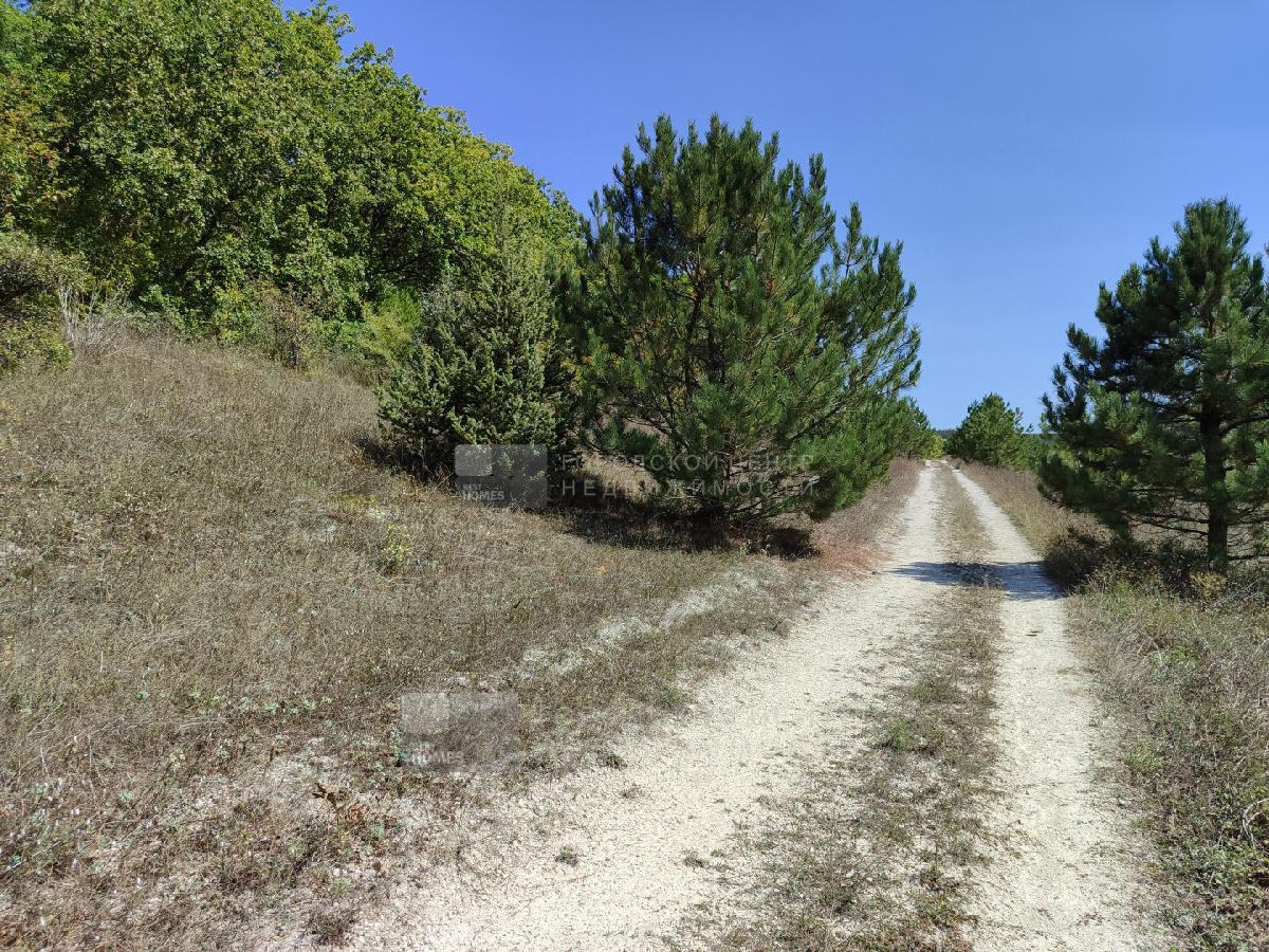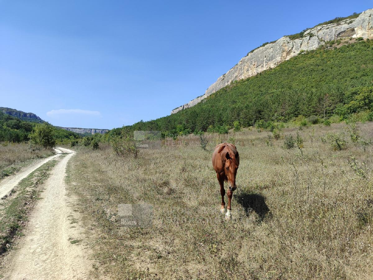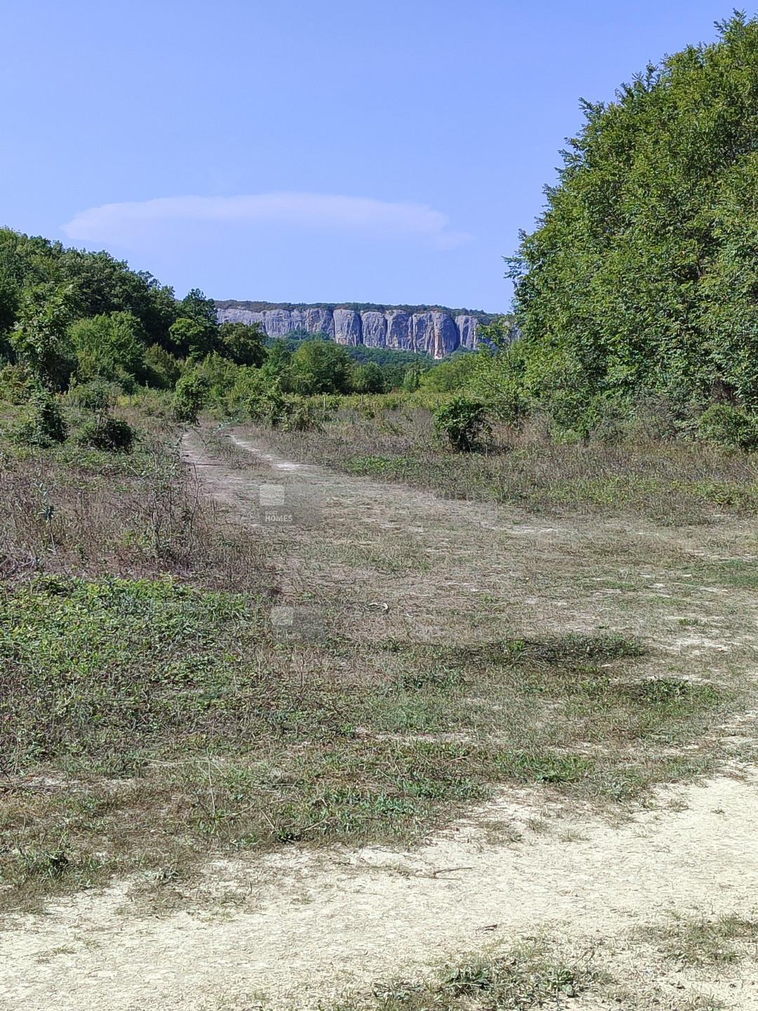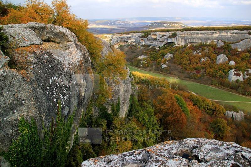 2 участка смежных в Бахчисарайском районе, под горой Мангуп-Кале. Красивое видовое туристическое место, дорога на пещерный город Мангуп. Ровное поле чуть под уклоном к горе, по границе сосновый бор с одной стороны и орешниковые и кизиловые рощи с другой.