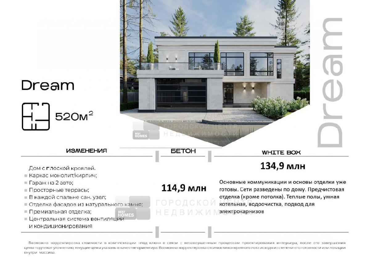 Новый дом класса бизнес, на 5 спален (в каждой комнате сан узел, в мастер спальне, просторная гардеробная комната с панорамным остеклением), общей площадью 520м.кв, возводимый по технологии: монолит/кирпич.