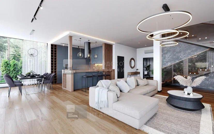 Новый, КИРПИЧНЫЙ дом в посёлке бизнес-класса (на 4 спальни, в мастер-спальне 2 гардеробные комнаты + сан узел с панорамным остеклением) площадью 300м.кв (монолит/кирпич). На участке 8,4 сот. сосны. Выполнено мощение территории + озеленение (ели, туи), рулонный газон, произведен дренаж, реализована отмостка, забор.