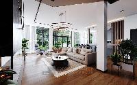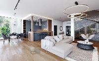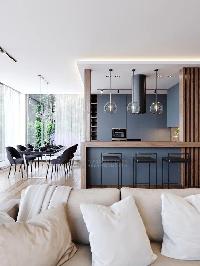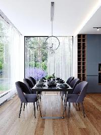 Интерьерная отделка, двух типов : white box и «под ключ». Дом, возводится по индивидуальному дизайн-проекту, с применением качественных материалов, премиум уровня. Отделка «под ключ», включает в себя кухню со встроенной техникой AEG. Возможен вариант меблировки дома. Камин. Постирочная и гардеробные помещения.