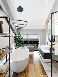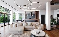 Центральная система вентиляции и кондиционирования. Высота потолков 3,6м. Центральные коммуникации. Теплые полы на 1 и 2-эт. Технологичная система газового отопления, с функцией дистанционного контроля и мониторинга. Система очистки воды. Энерго-сберегающее панорамное остекление, препятствует тепло-потерям в зимний период времени и попаданию ультра-фиолетового излучения, в летний период. Фасадное освещение в трендовой стилистике.