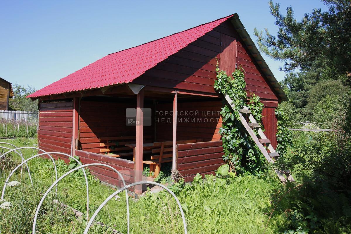 Участок 10 соток -прямоугольной формы, освоен, плодовые кусты и деревья, детская площадка. Есть хозблок, навес на два авто..