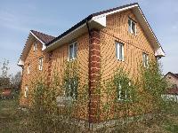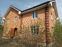 Дом 280 кв.м. состоит из двух этажей и высокого мансардного этажа. Основная часть дома построена из бревен d30 см, другая часть- из пеноблока. Весь дом облицован полноценным кирпичом. Фундамент- ленточный. Крыша- металлочерепица. Окна- двухкамерные пластиковые.
