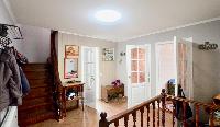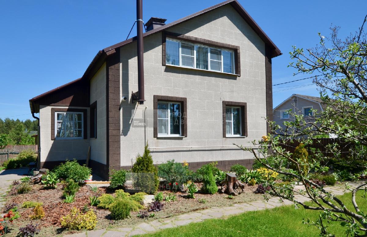 Добротный, ухоженный дом площадью 175 м.кв. с магистральным газом на красивом участке 11 соток с дизайном ландшафта садом и огородом рядом с хвойным грибным лесом и рекой, где можно и рыбу ловить и купаться. Пляж из белого песка. Место высокое сухое, в апреле (снег на фото) вода в колодце ниже пятого кольца. Вода в доме от скважины на 60 метров. Дом из бруса обложен кирпичом и покрыт декоративной штукатуркой, поэтому в доме летом прохладно, зимой тепло, легко дышится и крепко спится. В цокольном этаже ранее была баня с душем и с/узлом. При желании её легко устроить. Дымоход (выше на нём стоит камин), вода, канализация в наличии.