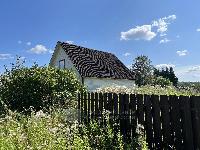 Просторный участок 23 сотки (по документам два участка 18 и 5 соток) имеет правильную прямоугольную форму. Полого задней частью спускается к оврагу, в котором протекает речушка.
