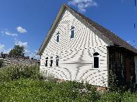Построен в 2015г из бруса 150х100мм, утеплен и обшит светлым сайдингом.