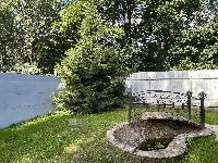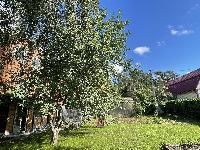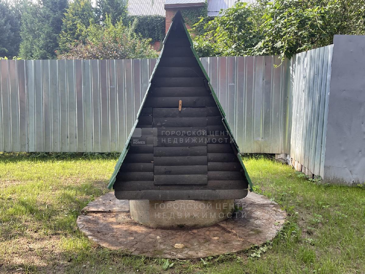 Участок в собственности, ровный, правильной формы, огорожен. На участке посеян газон. Композиция пруд с мостиком рядом с пушистой елью украшают входную группу дома.