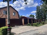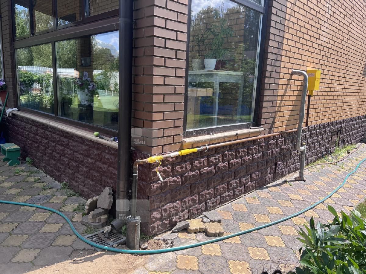 Дом общей площадью 302,8 м2 построен из термокерамического кирпича с утеплителем, отделан облицовочным кирпичом, толщина стены 55 см. Фундамент 2.5 м, межэтажные перекрытия - плиты, крыша - металлочерепица.