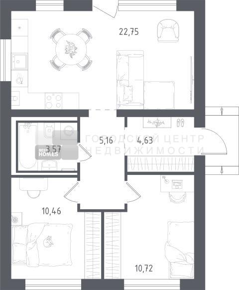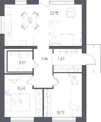 В базовую комплектацию включена металлическая входная дверь, двухкамерные стеклопакеты. Отсутствие межкомнатных перегородок позволит вам адаптировать пространство под себя.