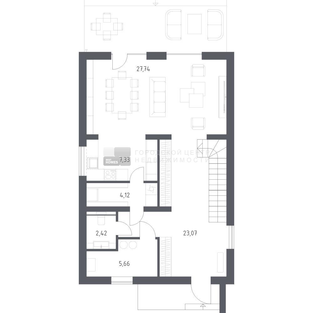 В базовую комплектацию включена металлическая входная дверь, двухкамерные стеклопакеты. Отсутствие межкомнатных перегородок позволит вам адаптировать пространство под себя.