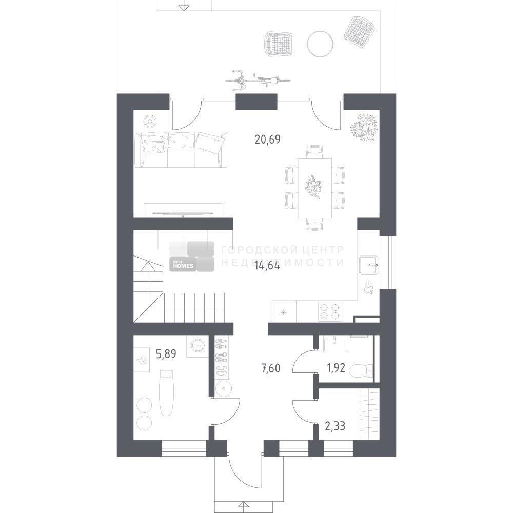 В базовую комплектацию включена металлическая входная дверь, двухкамерные стеклопакеты. Отсутствие межкомнатных перегородок позволит вам адаптировать пространство под себя.