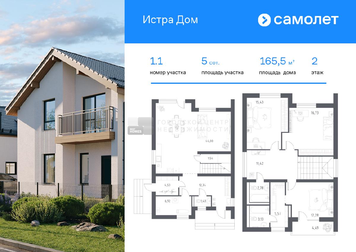 В продаже дом площадью 165,5 м2 на участке 5.01 от застройщика «Самолет» в загородном проекте «Истра Дом».