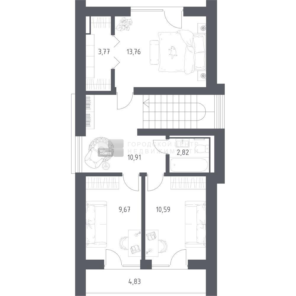 В базовую комплектацию включена металлическая входная дверь, двухкамерные стеклопакеты. Отсутствие межкомнатных перегородок позволит вам адаптировать пространство под себя.