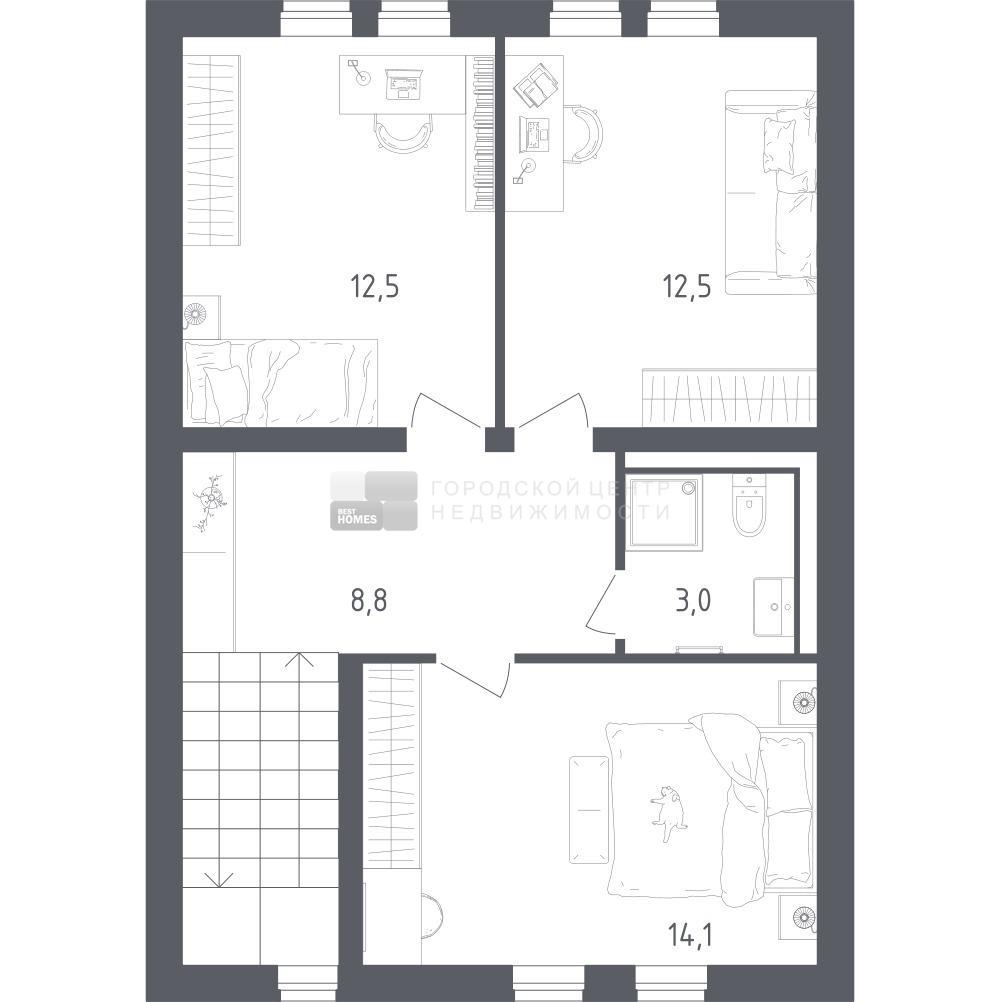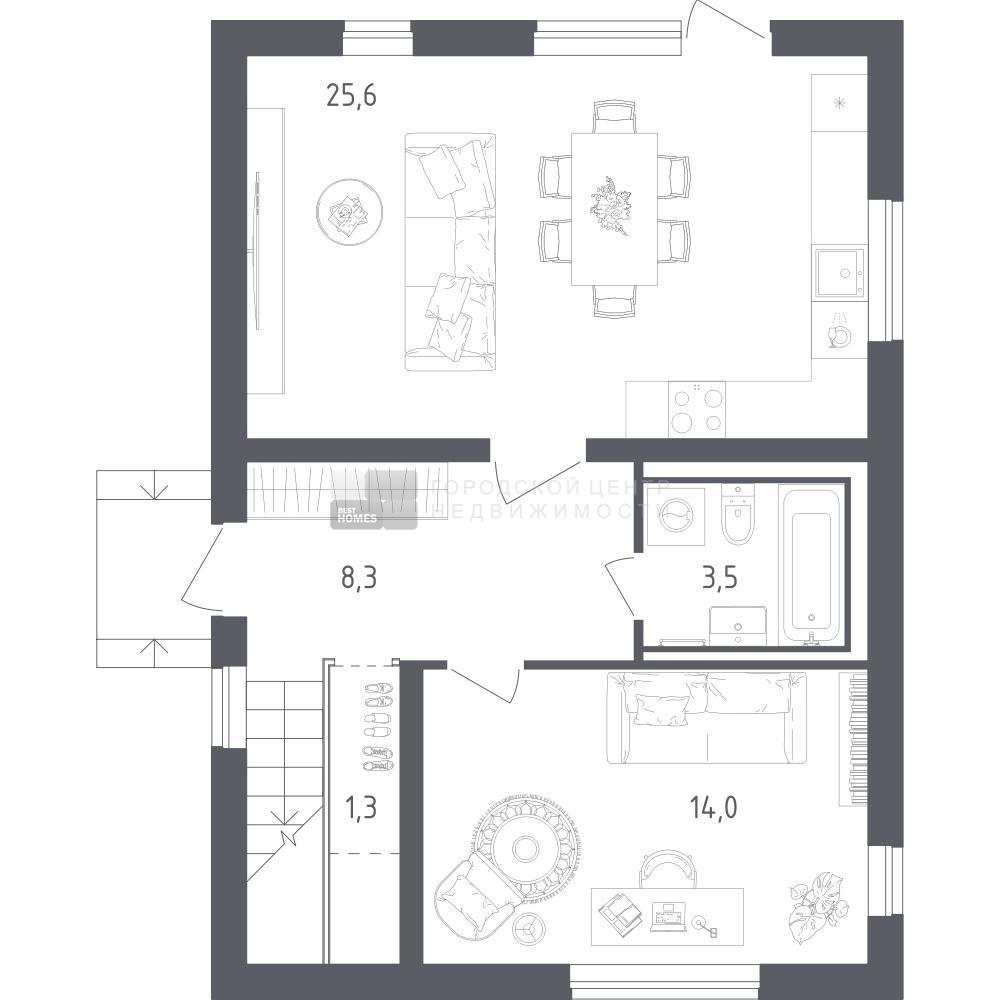 В базовую комплектацию включена металлическая входная дверь, двухкамерные стеклопакеты. Отсутствие межкомнатных перегородок позволит вам адаптировать пространство под себя.