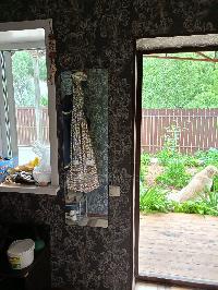 С задней стороны дома просторная крытая застекленная веранда. Раздвижные застекленные двери при входе.