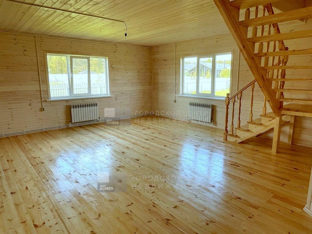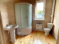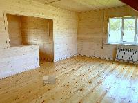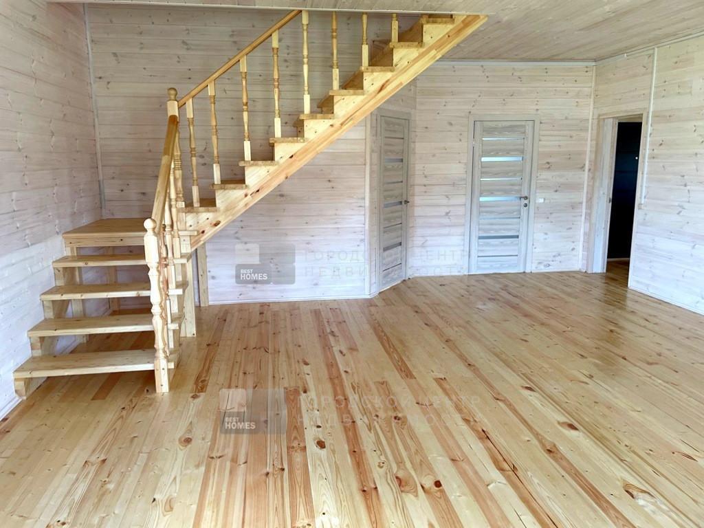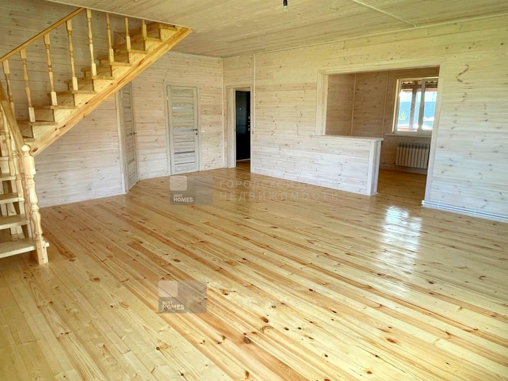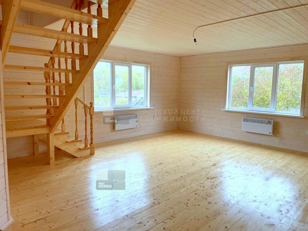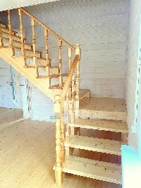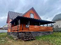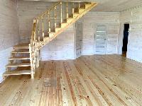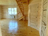 Дом двухэтажный 175,9 м2, из бруса 150х150, дополнительно утеплен, облицован снаружи блокхаусом, изнутри раухаусом. Фундамент - железо-бетонные сваи, кровля - металлочерепица, стеклопакеты. Полностью отделан, оборудован системами круглогодичного жизнеобеспечения и сантехникой. Простая и оч.удобная планировка: прихожая, просторная гостиная с зоной кухни, отделенной стойкой, и выходом на палубную веранду, 4 спальни (одна из них на первом этаже), 2 санузла.