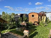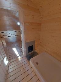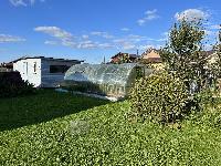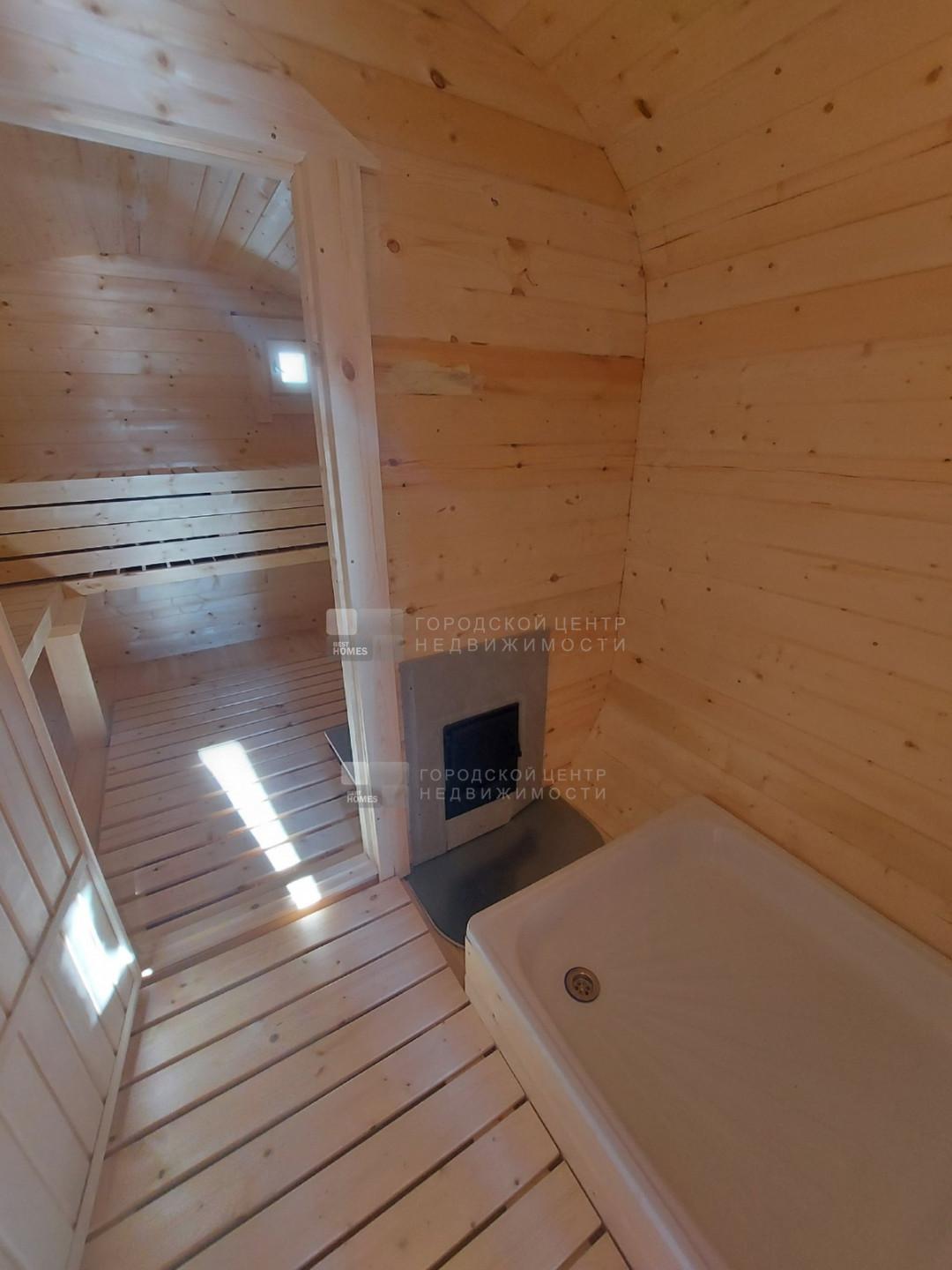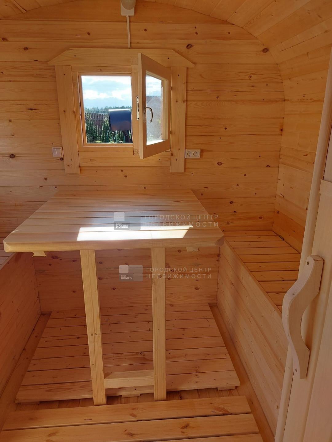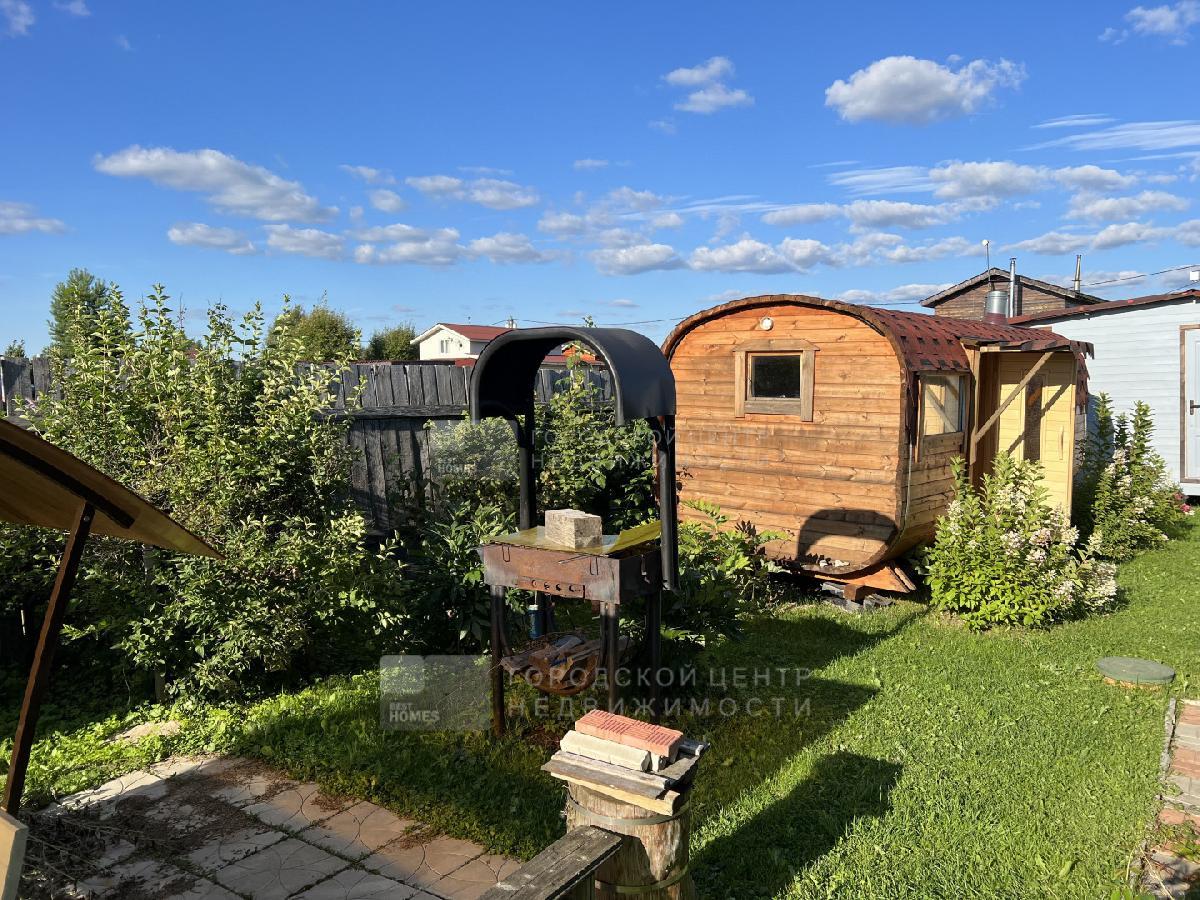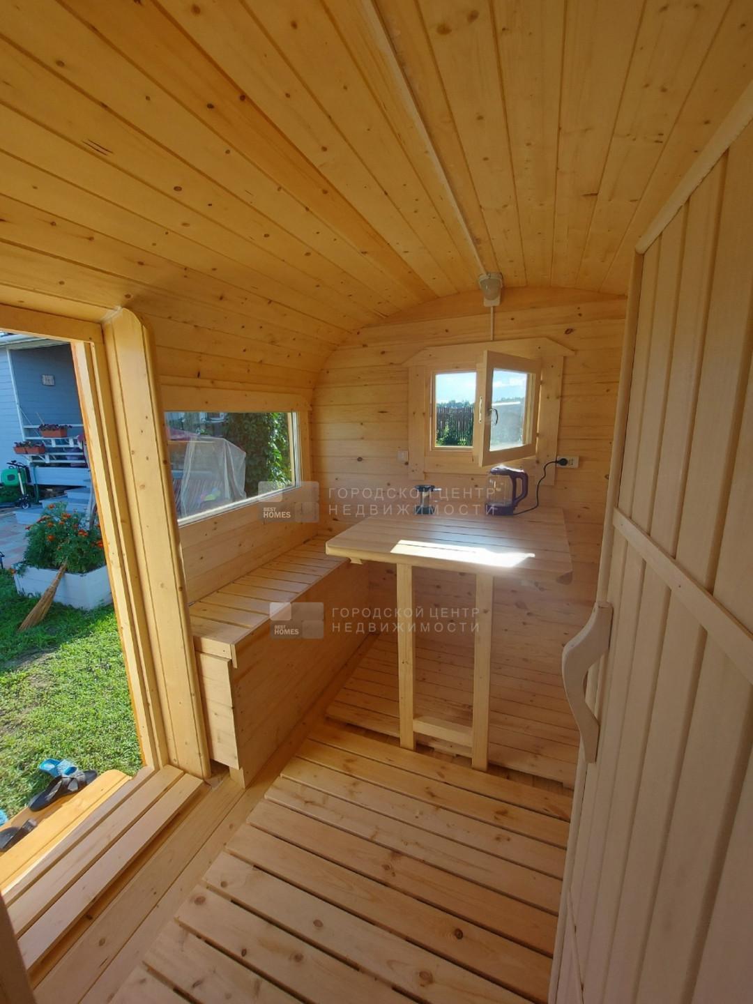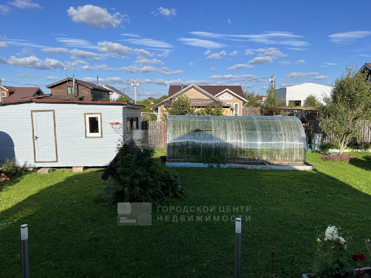На участке компактная баня с русской парной и комнатой отдыха, хозблок для инструментов и инвентаря, мастерская, две теплицы.