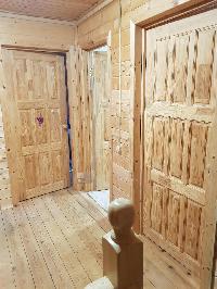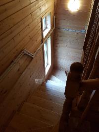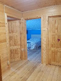 1 эт.:  холл, светлая гостиная-кухня с высокими окнами и камином, кабинет/спальня, с/у с душевой кабиной, бойлерная.