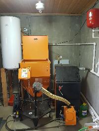 Твердотопливный котел с автоматической системой подачи пеллет. Можно использовать дрова, брикеты.