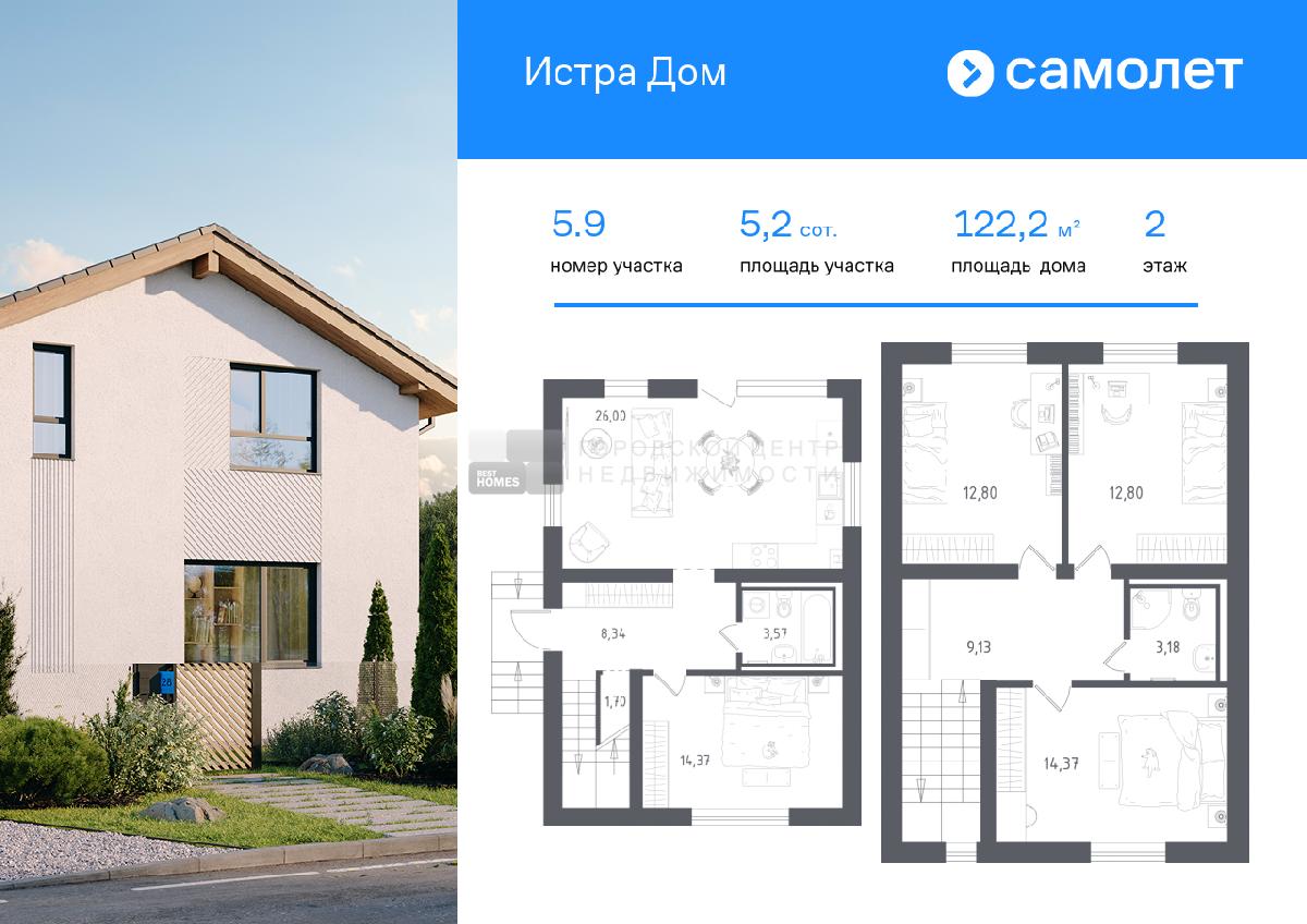 В продаже дом площадью 122,22 м2 на участке 5.22 от застройщика «Самолет» в загородном проекте «Истра Дом».