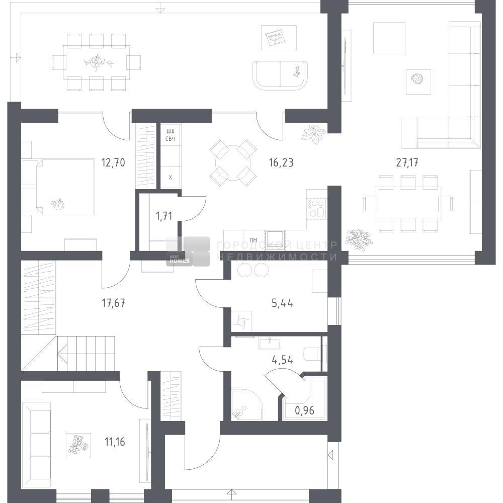 Функциональная планировка, большие окна и высокие потолки. Дом без отделки.