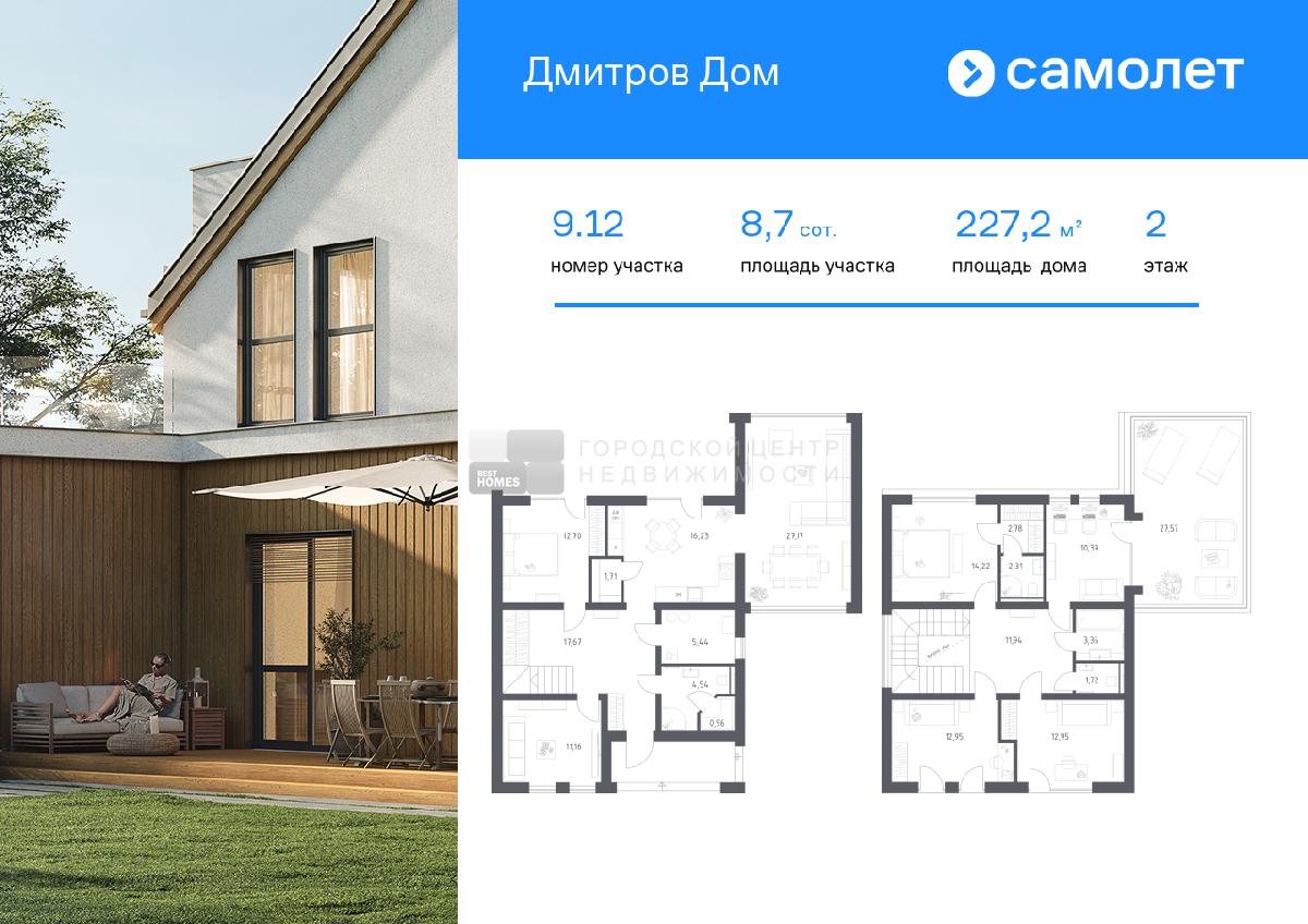 В продаже дом площадью 227,24 м2 на участке 8.68 от застройщика «Самолет» в загородном проекте «Дмитров Дом».