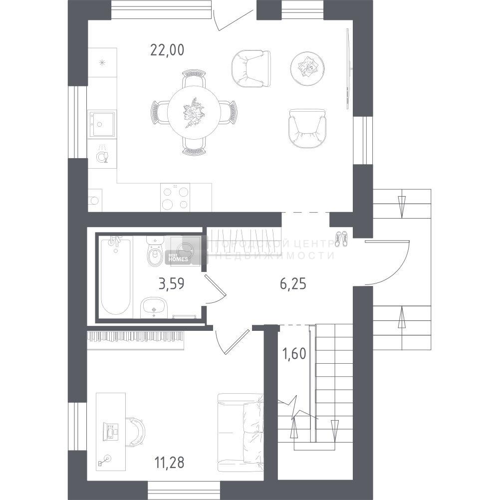 В базовую комплектацию включена металлическая входная дверь, двухкамерные стеклопакеты. Отсутствие межкомнатных перегородок позволит вам адаптировать пространство под себя.