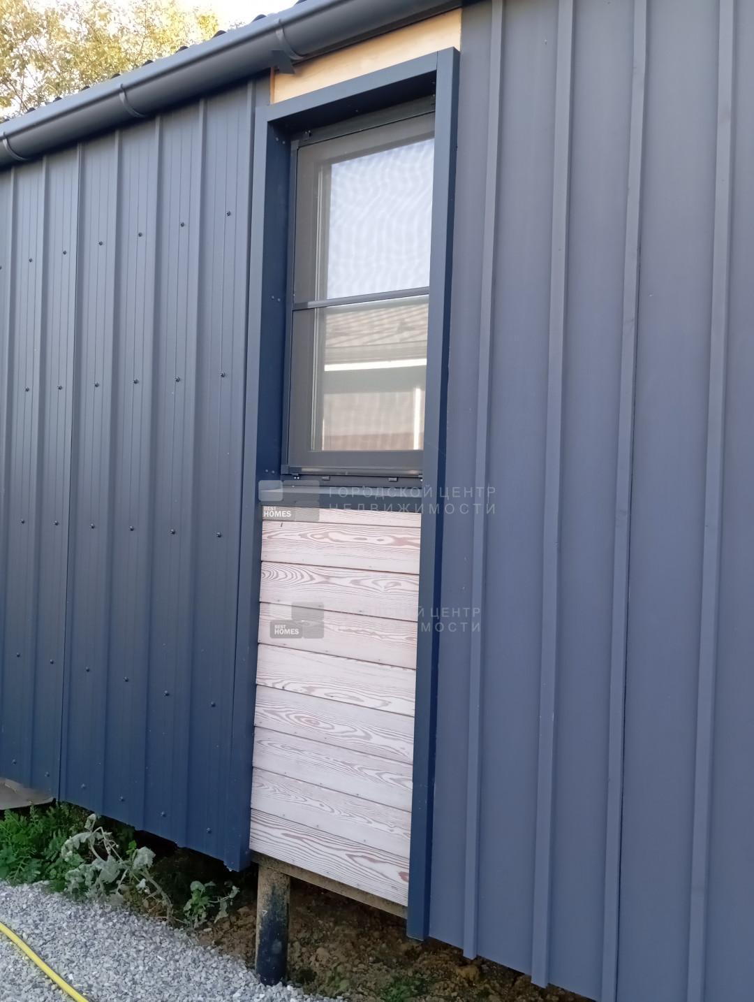 Утепление кровли, внешних стен и полов 250 мм KNAUF. Внешние стены обшиты профнастиоом (ST-15 (Barn) Corundum 50 матовый 0,5 мм. Ral 7024) в сочетании с лиственницей.. Кровля - металлочерепица 0.5 с защитным слоем цинка 140 гр. на кв.м. Межкомнатные перегородки 200 мм, с звукоизоляцией.В качестве чернового пола используется фанера толщиной 22 мм, что позволяет избежать посторонних шумов (скрипов), а также служит дополнительной тепло и шумоизоляцией. Чистовой пол - износостойкий ламинат Внутренние стены отделаны имитацией бруса и лиственницей. Пиломатериал использовался категории Прима.