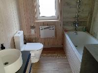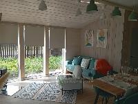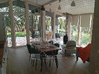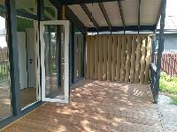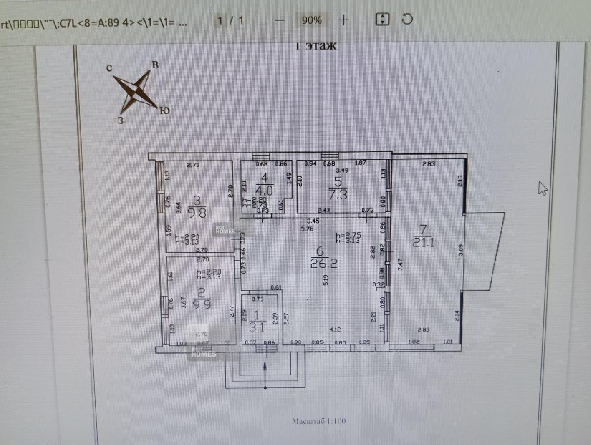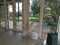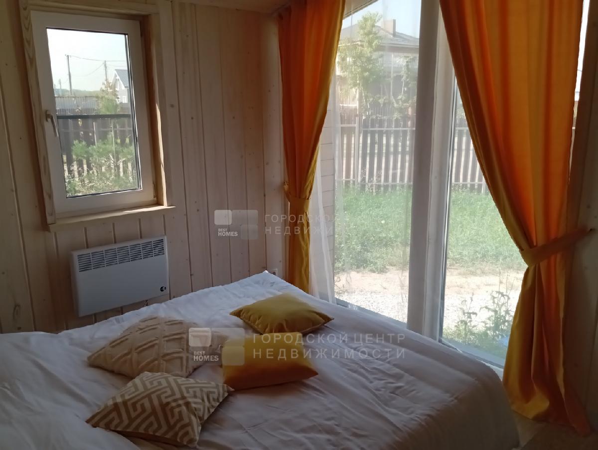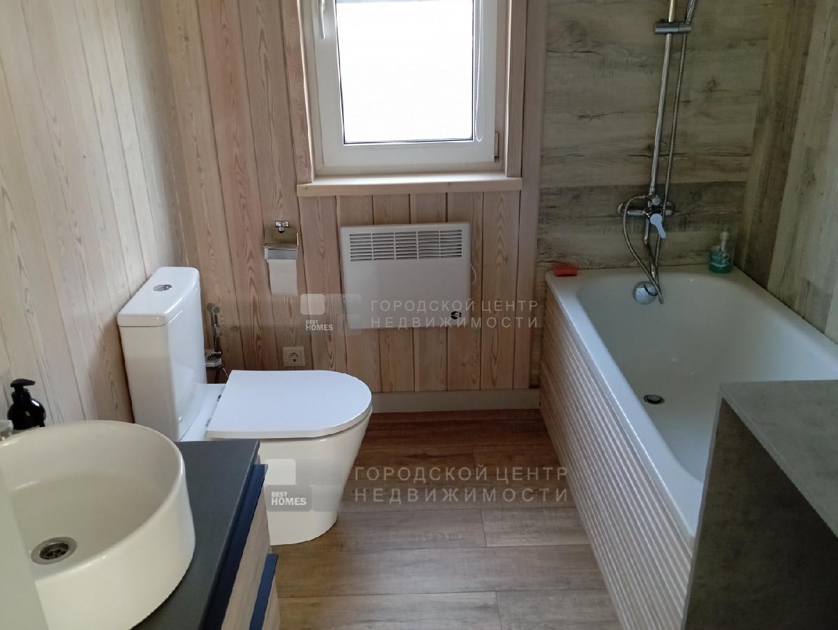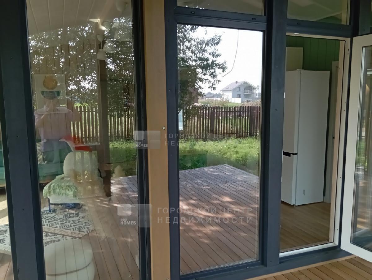 В доме три спальни 9,9; 9,8 и 7,3 кв.м., Прихожая - 3,1 кв.м., с/у с ванной - 4,0 кв.м.. Кухня-гостиная - 26,2 кв.м. с выходом на веранду под козырьком. Пол на веранде - лиственница.