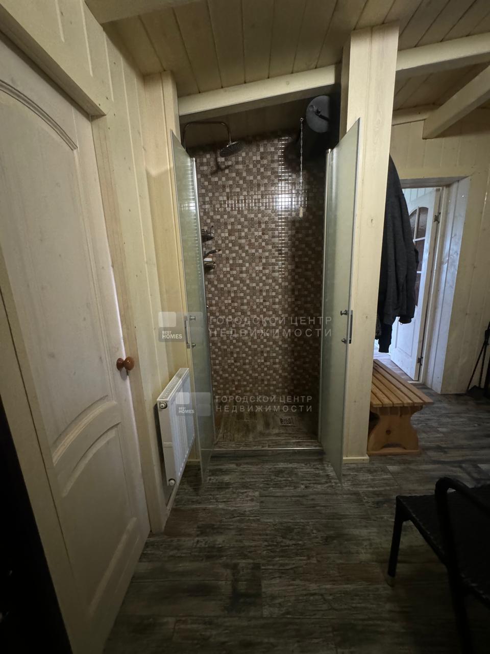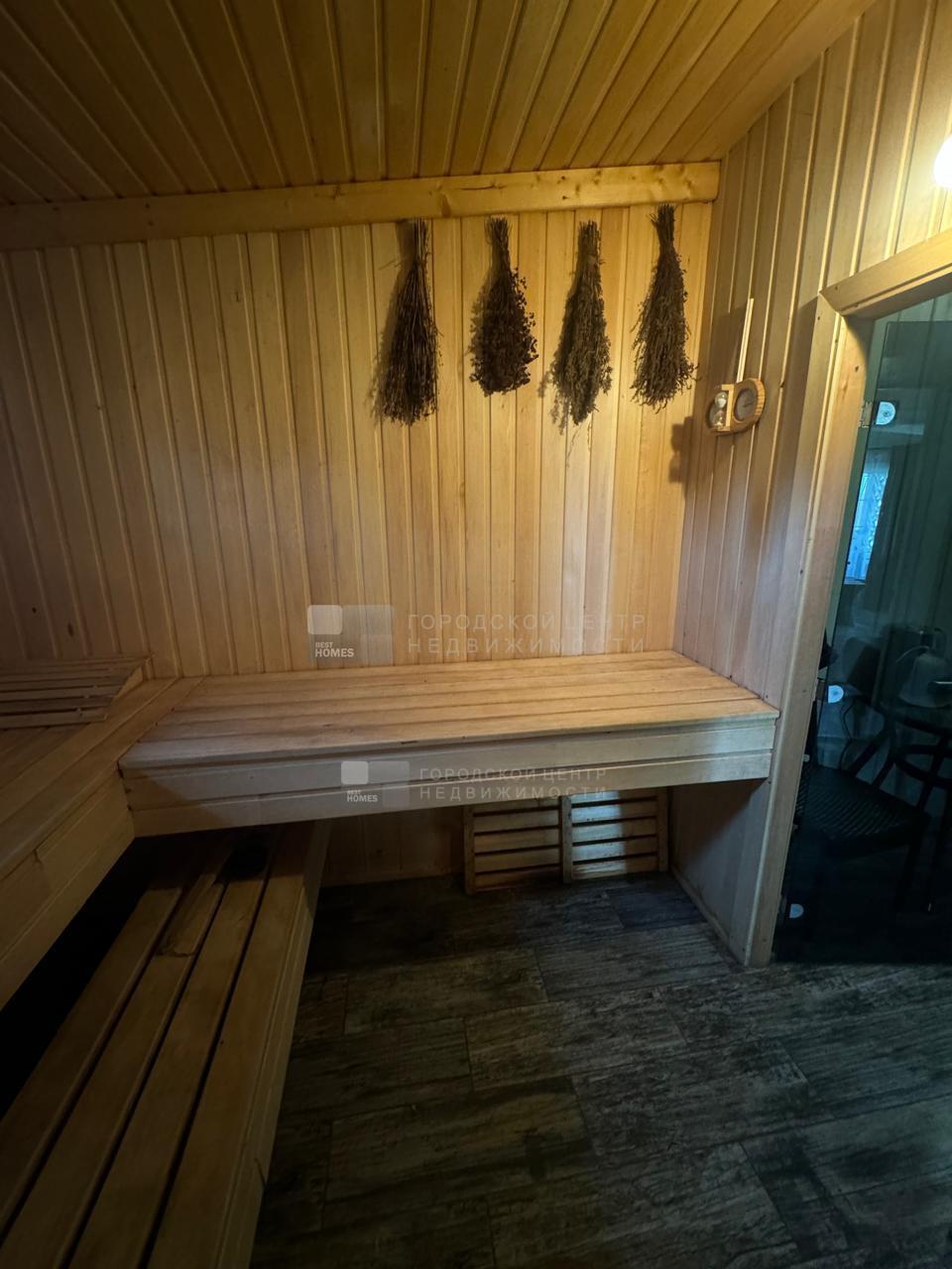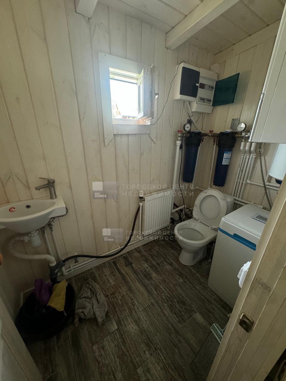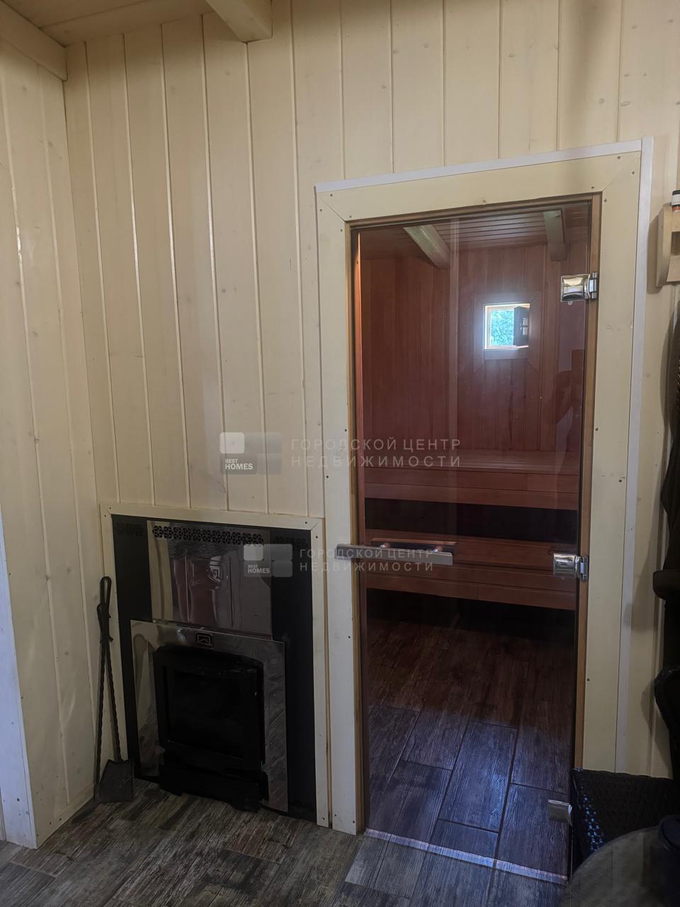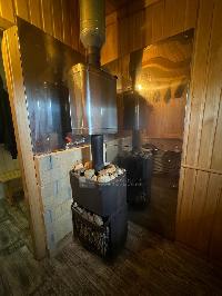 В доме обустроена баня на дровах с комнатой отдыха. В с/у опрокидывающееся ведро для ополаскивания после парной.