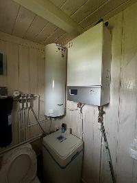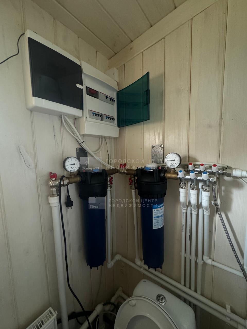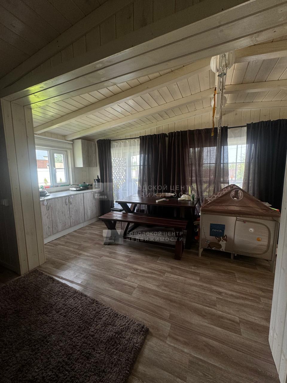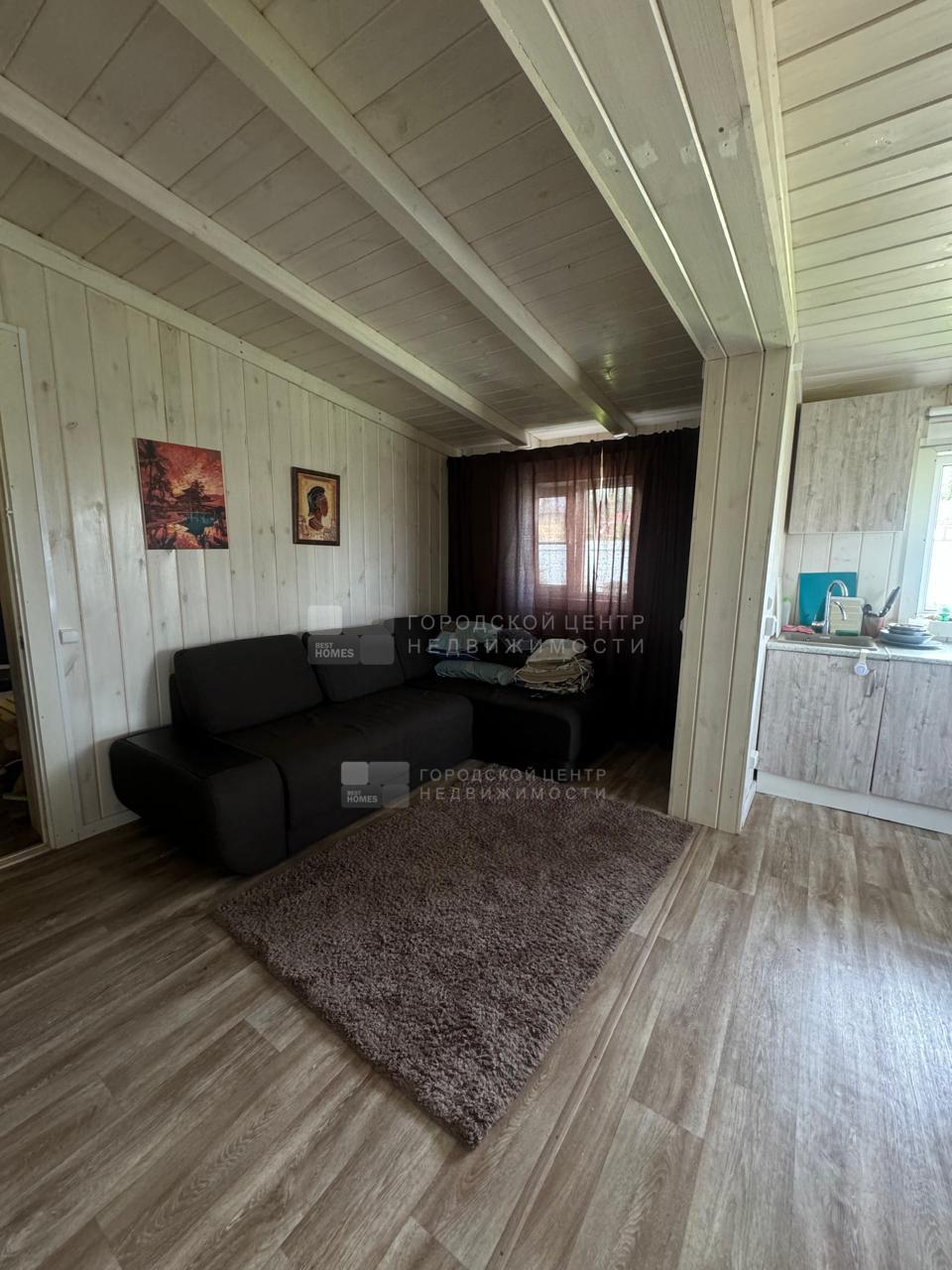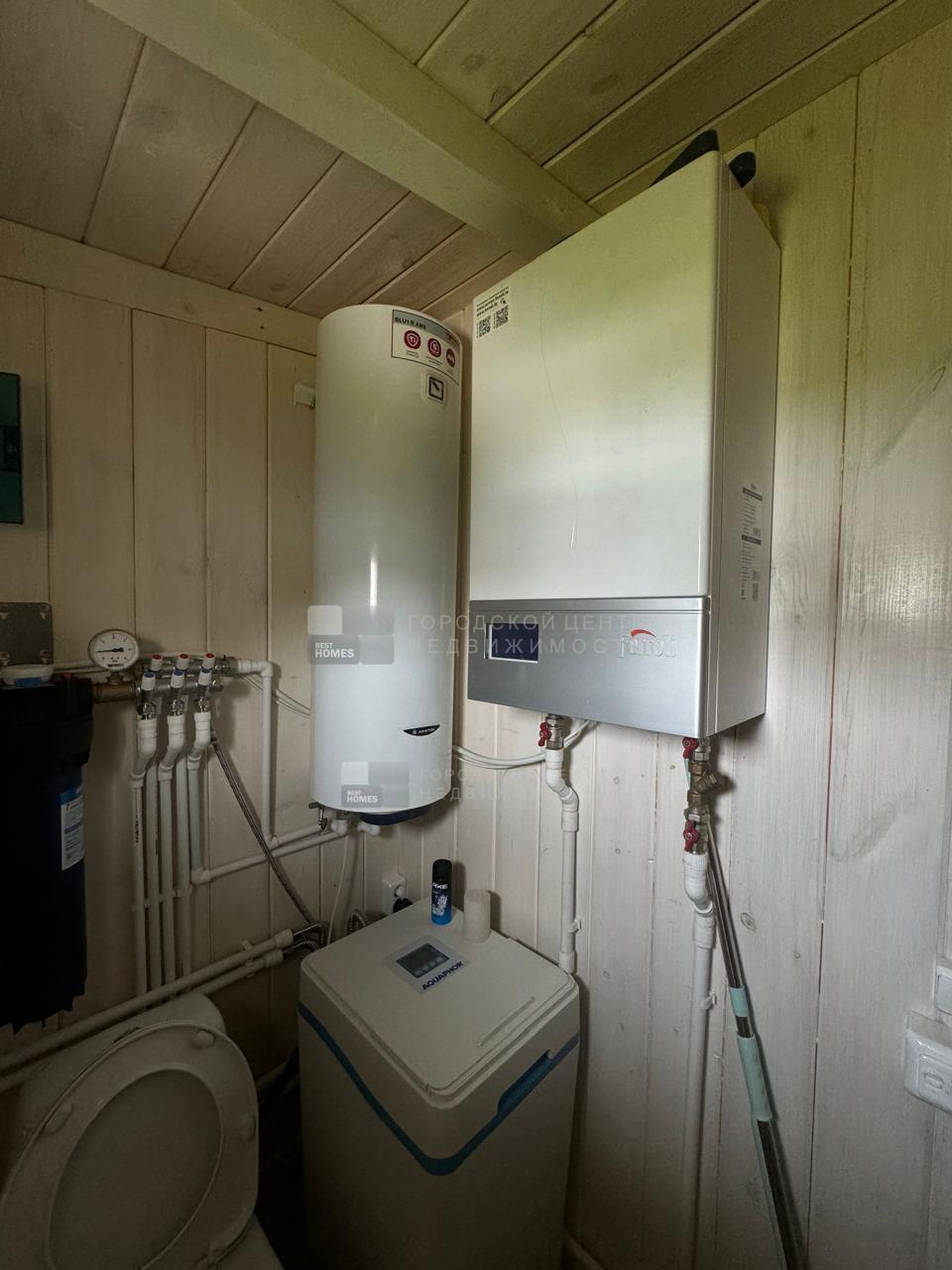 В доме обустроена баня на дровах с комнатой отдыха. В с/у опрокидывающееся ведро для ополаскивания после парной.