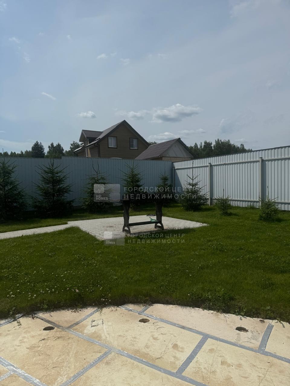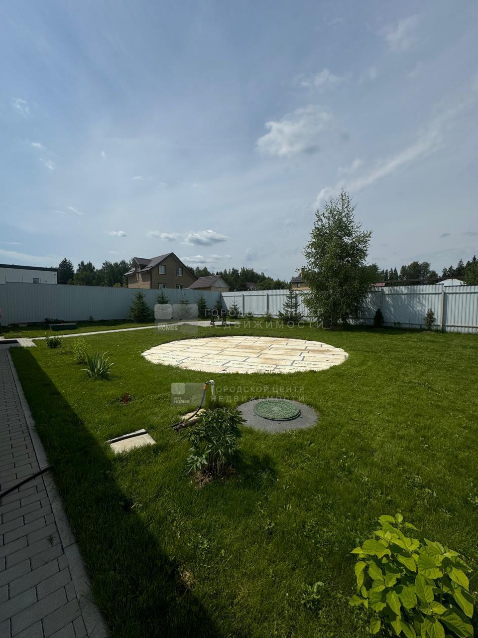 На участке летом устанавливается большой каркасный бассейн (глубина 1,5м), под ним отсыпанная песком площадка. Бассейн в подарок покупателям.