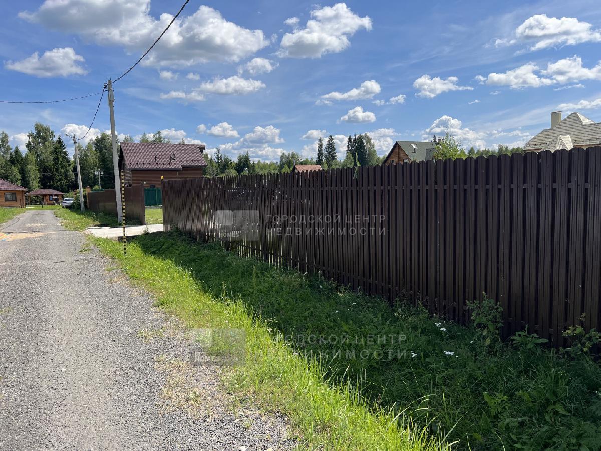 Ровный участок 12,6 соток правильной прямоугольной формы огорожен с трех сторон забором (по фасаду штакетник, справа и сзади аккуратный профлист, слева забора нет).