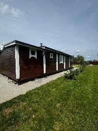 На входе просторная крытая терраса с гибким стеклом, холл, кухня-гостиная, спальня, раздельный  с/у с душевой кабиной.
