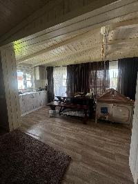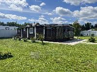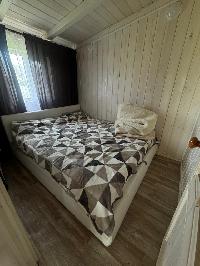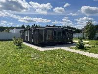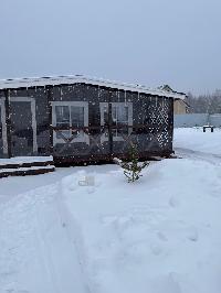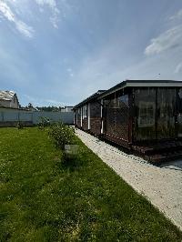 На входе просторная крытая терраса с гибким стеклом, холл, кухня-гостиная, спальня, раздельный с/у с душевой кабиной.