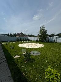 Участок выровнен и засажен мягкой садовой травой. Регулярно прокашивается.