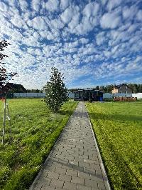 Поселок расположен на лесной поляне, вдали от дороги. Очень тихо и зелено.