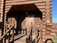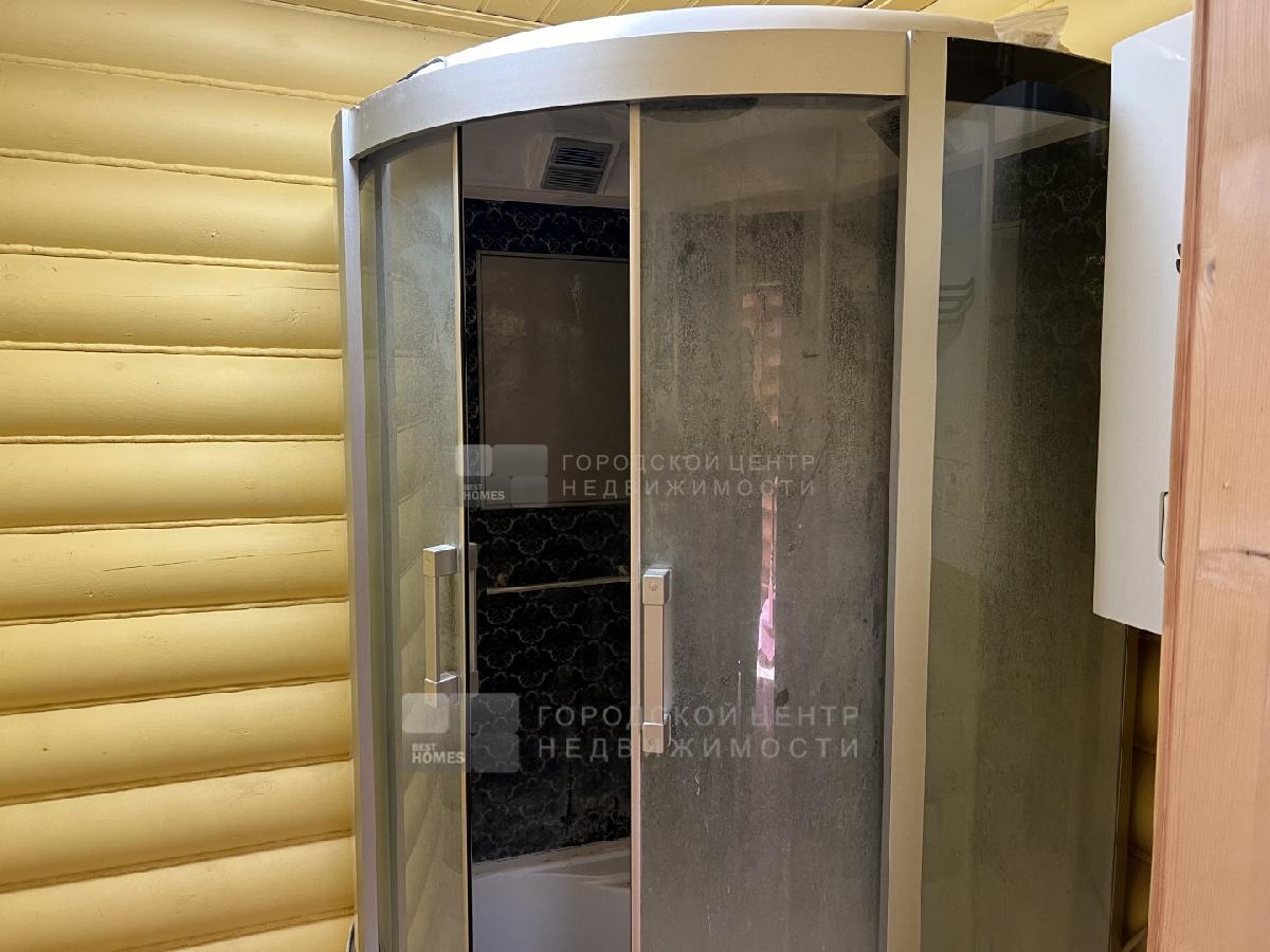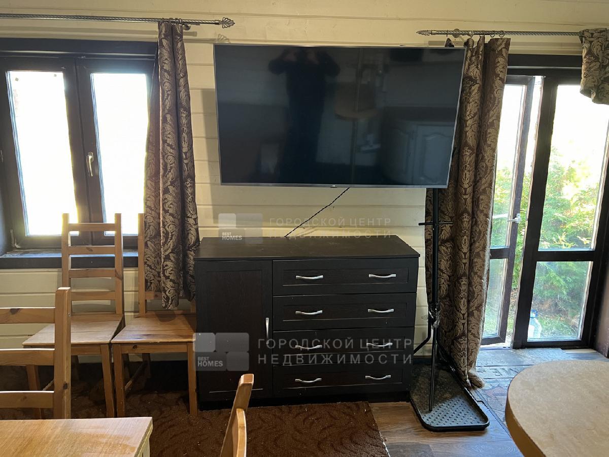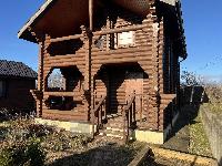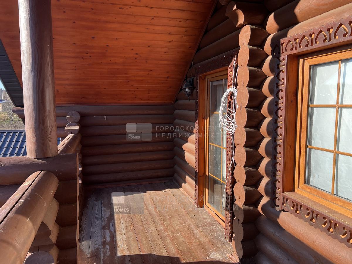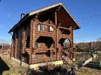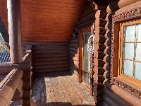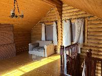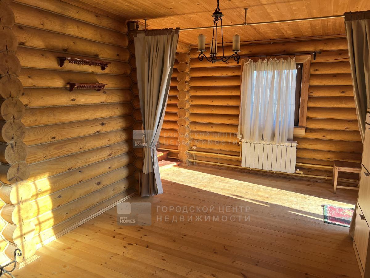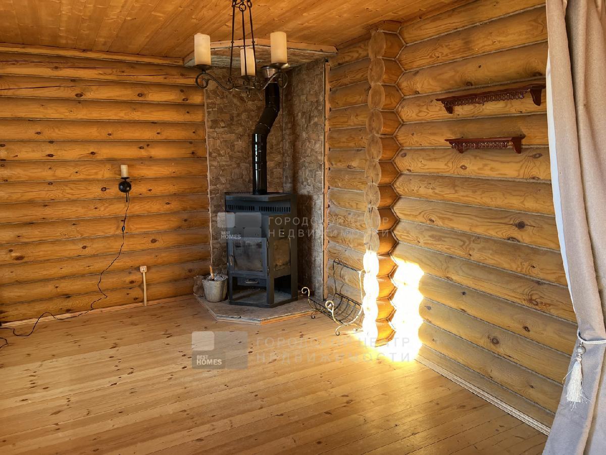 Материал стен оциллиндрованное бревно диаметром 220 мм. Обработано снаружи пропиткой темно-коричневого цвета. Внутри интерьер цвета натурального дерева.