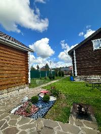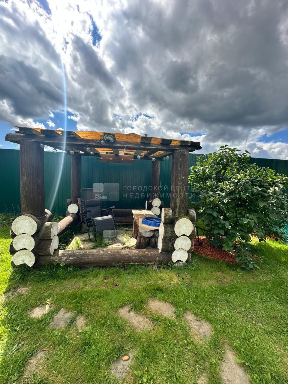 В дальнем конце участка обустроена бревенчатая летняя кухня. Есть небольшой спортивный уголок. комплект садовой мебели.
